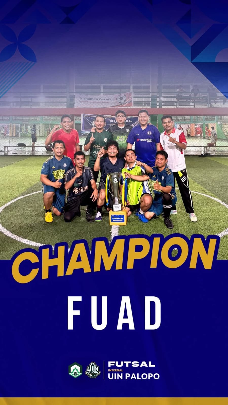 PALOPO, ACTANEWS.CO.ID – Fakultas Ushuluddin, Adab, dan Dakwah (FUAD) UIN Palopo berhasil meraih juara pertama dalam Tournament Futsal Internal UIN Palopo 2025 yang digelar di Lapangan Futsal Sinar Setuju dan berlangsung selama enam pekan, mulai 26 Agustus hingga 30 September 2025.